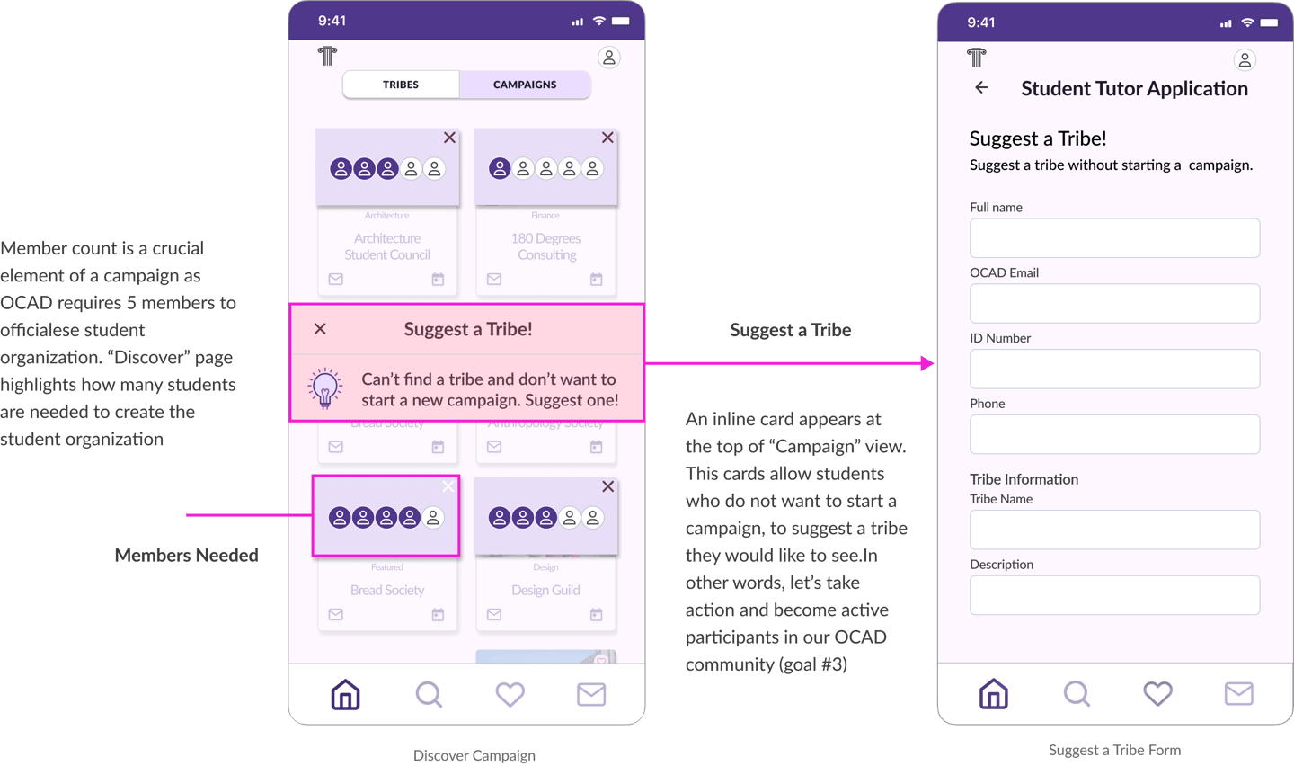 This feature empowers students to crowdsource and advocate for new tribes, turning them into active contributors to OCAD’s growing community—an essential step in achieving Goal #3.